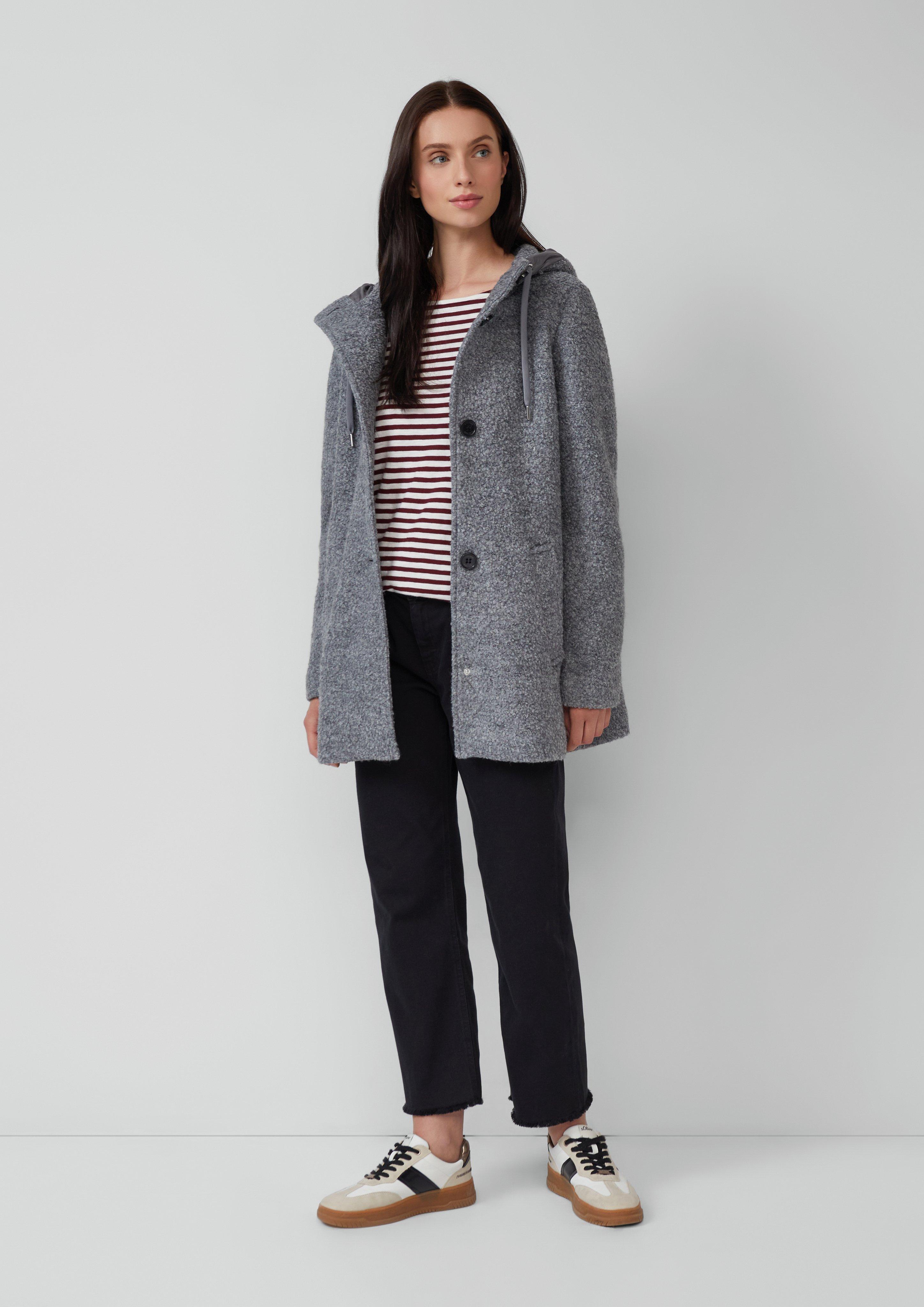 Bouclé-Jacke aus Wollmix mit Kapuze