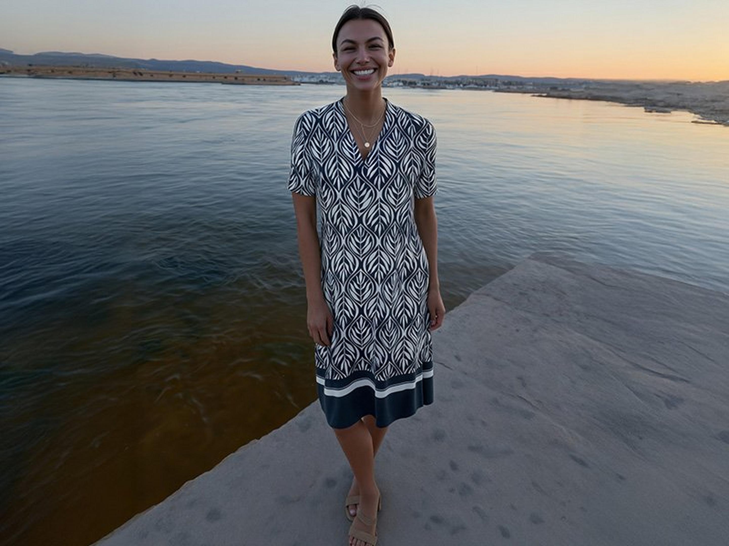 Das A-Linien-Kleid zeichnet sich durch eine schmale Schulterpartie aus, die sich nach unten hin ausweitet – ähnlich dem Buchstaben „A“. Es umspielt sanft die Figur und ist besonders schmeichelhaft für Frauen mit breiteren Hüften oder Oberschenkeln. Ein echter Allrounder für Alltag und Büro.