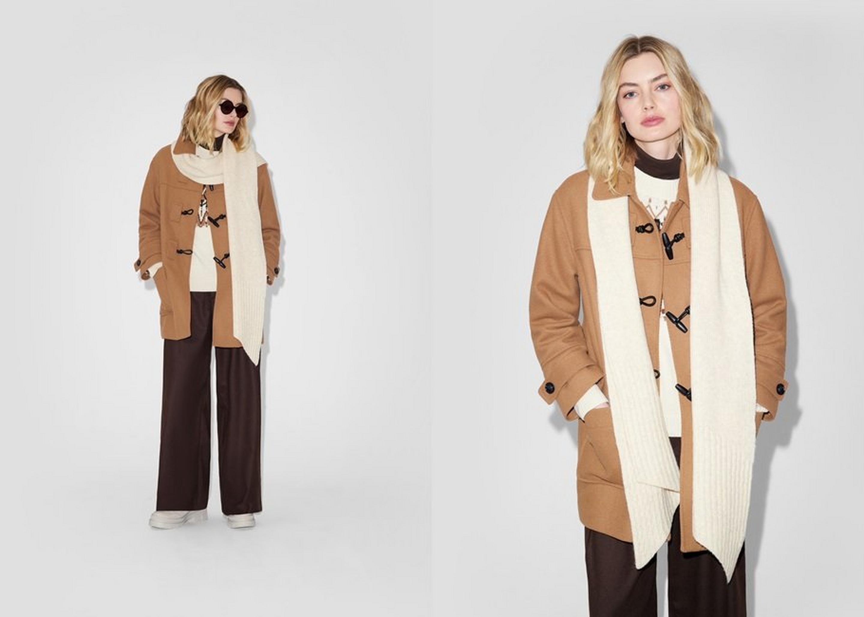 Unter der Jacke getragen: Für alle, die es clean mögen – der Schal verschwindet dezent, bringt aber trotzdem Farbe ins Spiel.